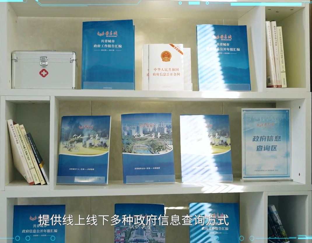 主动公开+依申请公开,应公开尽公开。配备政府信息查询机,配套本地查询系统,让群众实现线上便捷查询。添置专用展示柜,梳理汇编高频事项、共青政策、便民服务手册、26个试点领域标准目录等便民材料;主动公开历年政府工作报告、信息公开年报等工作成果,配置政务公开相关书籍,便于群众线下翻阅。配备电脑、座椅,张贴依申请公开制度,梳理明确受理单位信息,提供申请填写样表,方便群众便捷申请公开信息。