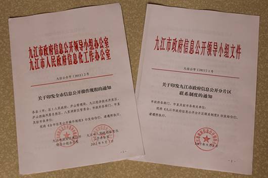 《全市信息公开操作规程》、《九江市政府信息公开分片区联系制度》 |