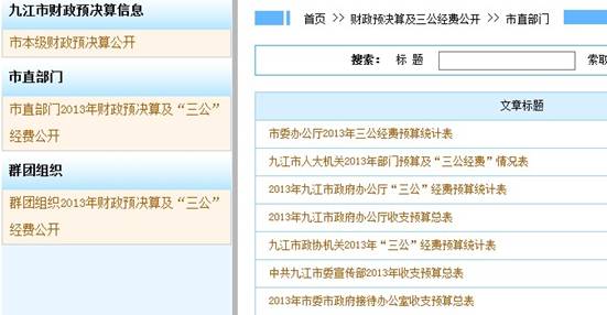 2.推进财政预算决算、“三公”经费和行政经费公开。(1)市、县两级财政总预算和总决算已公开。2012年市级总预算执行情况和2013年市级总预算,2012年市本级决算,各县(市、区)财政预决算,已通过政府网站、媒体对外公开。此外,还逐月公开了市本级财政收入完成情况,定期公开对财政预算执行情况的分析。(2)根据《省财政厅转发财政部关于推进省以下预决算公开工作的通知》精神,一是下发了《关于推进市直部门预决算及“三公”经费公开工作的通知》,明确了公开范围、方式、口径、时间等。二是召开了市直单位2014年部门预算布置会,专门对部门预算和“三公”经费公开工作进行了专题部署。三是及时将市本级财政预决算、部门预算汇总数、三公经费汇总数以及市直各部门预算、三公经费预算在“中国九江”网、各部门子网站予以公开。