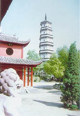 大胜塔,明洪武十二年(1379)建。清咸丰三年(1853)被拆毁三层,同治九年(1870)由九江兵备巡道景福倡修。塔为砖石结构,七级六面楼阁式,通高42.26米。塔门朝西,从第二层起,每层六面均有门,三实三虚。塔内有砖砌梯阶,如此可盘旋而上。此种塔梯结构在我国众多的古塔中,仅为一例。登塔眺望,浔城风光尽收眼底,匡庐雄姿历历在目。