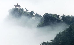 要真正领略五老峰的风光,光在山上转悠是不够的。若从山下的海会镇一带远看五老峰,叠峰连云,劈地摩天,山峰轮廓起伏多变,真有“黤黕寄霁色,峥嵘当晓空”的气势。云雾时,它好像腾云驾雾的五仙翁,高高腾起于半空的云雾之中;目光下,它衬托着蓝天白云,俨如一朵仰天盛开的芙蓉花,格外鲜艳夺目。无怪乎历代许多诗人名士来到五老峰,无不为这里的瑰丽景色所迷恋,留下了不少赞美的诗篇。唐朝大诗人李白曾在这里发出赞叹:“予行天下,所览山水甚富,俊伟诡特,鲜有能过之者,真天下之壮观也。”他还挥笔留下一首千古绝唱: