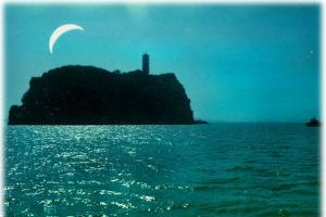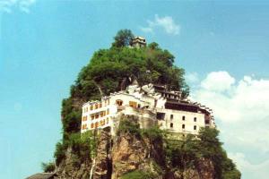 大孤山一头高一头低,远望似一只巨鞋浮于碧波之中,故又称“鞋山”。它高出湖面约70米,周长百余米,一峰耸峙,峻峭秀丽,古时有“蓬莱仙岛”之称。山上劲松挺拔,绿树葱郁,林中点缀着一座美丽的古代建筑——天花宫,殿宇雄伟,塑像辉煌,平日晨钟暮鼓,梵乐声声,令人飘飘欲仙。登山四顾,茫茫鄱湖云水和西面庐山秀色,悉在眼下。明代陈云德有诗赞道:“谁削青芙蓉,独插彭湖里。平分五老云,远挹九江水。日月共吞吐,烟霞互流徒。大力障狂澜,与天相终始。”