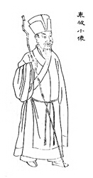 苏轼(1037—1101),字子瞻,号东坡居士,四川省眉山人,我国文学史上杰出的作家。他仕途坎坷,多次卷入新旧党争的政治旋涡,动辄得咎,屡遭贬谪。但在文学上却取得了极大的成就,散文为“唐宋八大家”之一,与欧阳修并称“欧苏”;诗与黄庭坚并称“苏黄”,首开宋代诗歌新风气,词与辛弃疾并称“苏辛”,为豪放词派的创始人。书法、绘画也有很深的造诣,也为继欧阳修之后北宋文坛杰出的领导者。