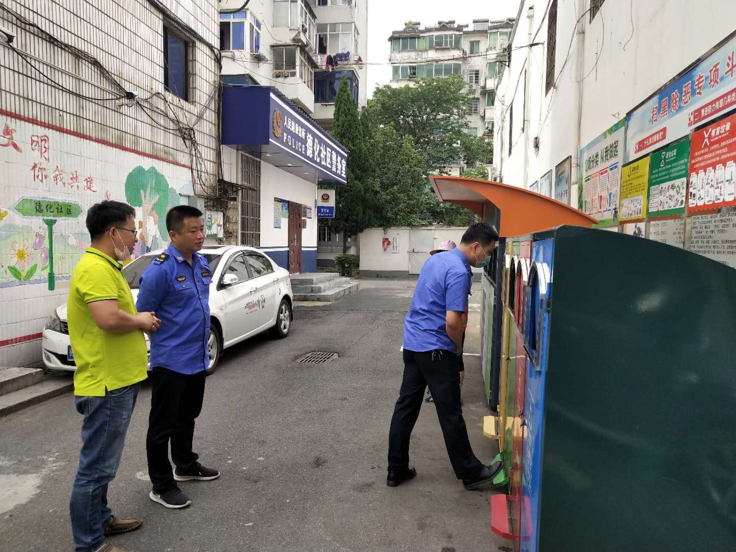 5月20日下午,九江市城管局局属一大队副大队长侯斌带领一大队二中队人员对浔阳区垃圾分类示范小区邮电小区垃圾分类工作“开卷考试”进行督察检查工作。