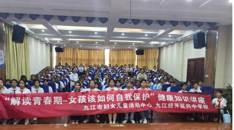 为进一步提高女童的安全防范意识和自我保护能力,从小树立“自尊、自爱、自信、自强”的优良品质,6月20日,九江市妇女儿童活动中心走进九江市经开区兴中学校,开展“解读青春期-女孩该如何自我保护” 健康知识讲座活动,有针对性的对六年级女生进行青春期教育和心理问题解析,让女生懂得如何自我爱护和自我保护,有效预防和疏导女生因学习、生活、生理等方面产生的心理问题,为女生调整心态,步入初中阶段树立良好心态发挥积极作用。