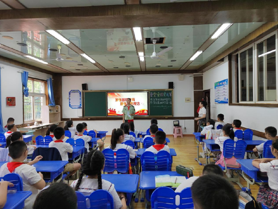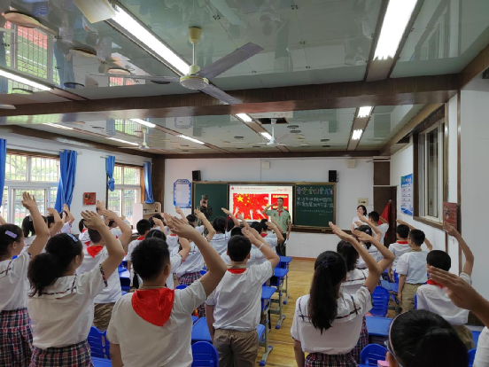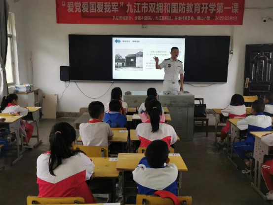 在九江小学红星班六(9)班开学第一课上,武警教员向同学们综合分析了我国发展面临的总体形势和周边局势,并从增强国防意识、严守国家秘密、热爱祖国母亲、保持学习劲头等方面阐述了青少年应该怎么做。