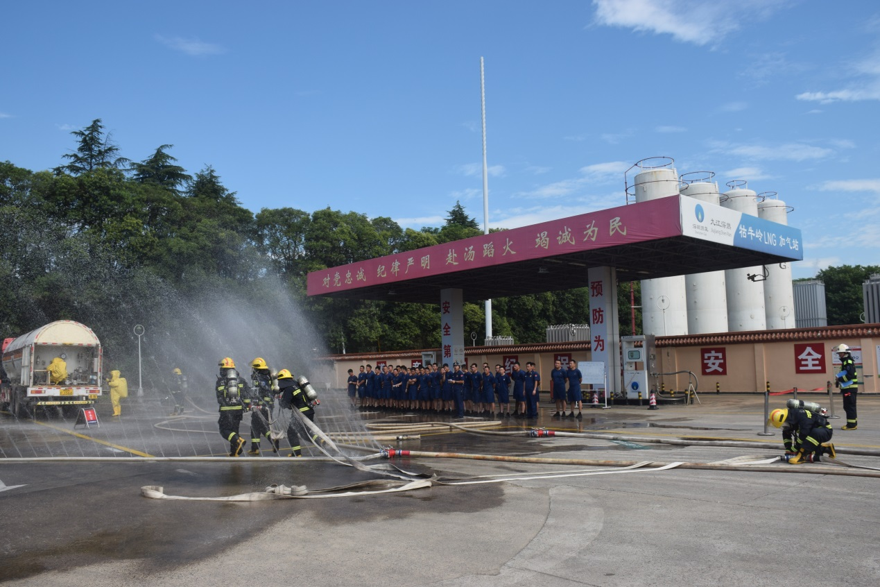 8月2日,九江深燃公司联合九江消防救援支队庐山大道特勤站在牯牛岭气化站开展了LNG槽罐车泄漏应急演练。