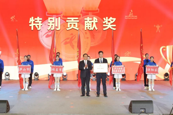杜少华向瑞昌市人民政府颁发九江市第十四届运动会“特别贡献奖”。