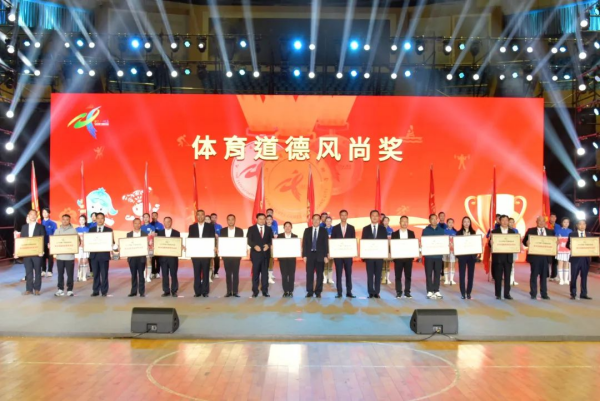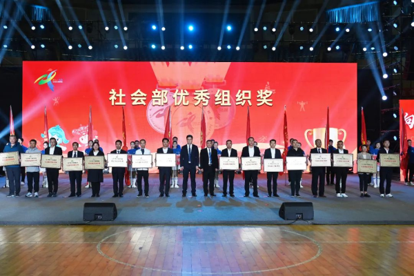 周亚平宣布九江市第十四届运动会社会部优秀组织奖、九江市第十四届运动会体育道德风尚奖、2021—2024年度输送优秀运动员贡献奖、2021—2024年度竞技体育突出贡献奖获奖名单,出席闭幕式的九江和我市有关领导及相关单位负责同志为获奖代表颁奖。