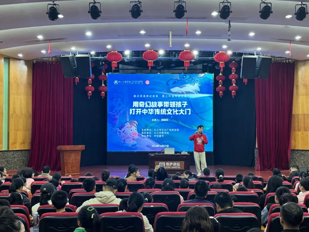 由九江市文化广电旅游局主办、九江市图书馆承办和中信童书协办的“2024年全民阅读系列活动”又来了。这次的主讲人是郭晓东老师,我们都知道晓东老师一直致力于宣传中华传统文化,用奇幻故事带领孩子打开中华传统文化大门,从而让孩子们爱上中国传统文化。这次他为我们带来的主题是“三星堆到山海经的奇妙阅读之旅”少儿讲座,旨在通过引导孩子们从古蜀文明的考古发现到古代神话传说的文学作品,开启一段跨越时空的阅读旅程。