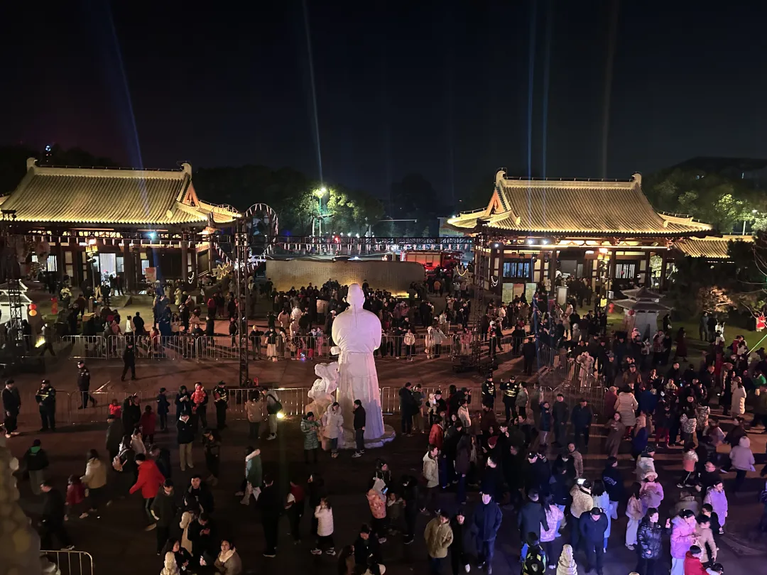夜幕渐浓,浔阳江景区灯光璀璨、游人如织,随处可见的喜庆装饰让市民游客感受到浓浓年味。在活动主广场,“灯光秀”“不倒翁”“歌曲串烧”等潮流演艺轮番上演,“说戏”“评书”“变脸”等传统表演艺术将九江这座国家历史文化名城的人文底蕴充分展现,让游客近距离欣赏传统艺术,切身感受传统文化的独特魅力。活动现场还有多种传统民俗体验项目,其中最引人注意的是“福禄寿”巡游。