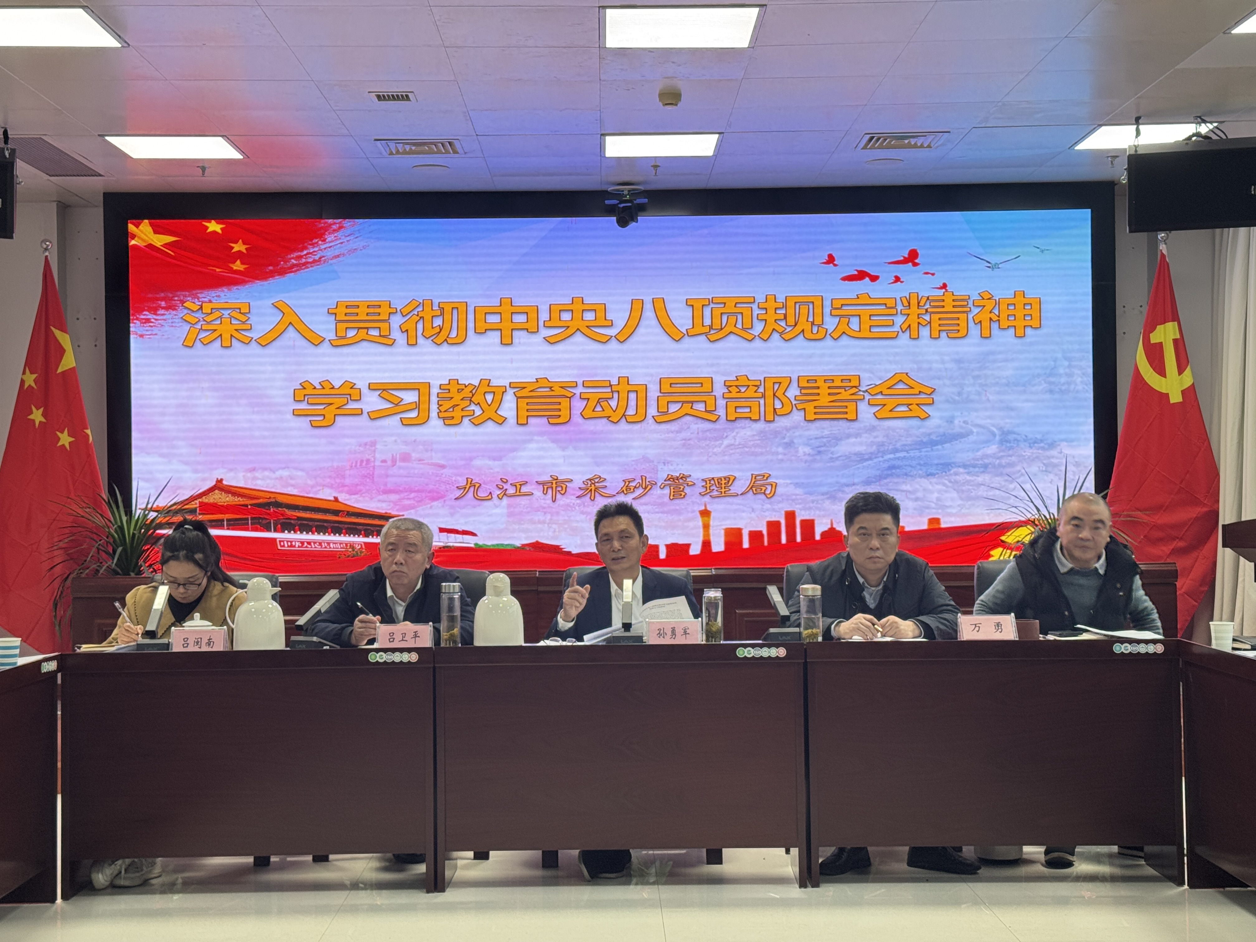 会议传达学习了习近平总书记关于深入贯彻中央八项规定精神学习教育的重要论述和中央、省委、市委相关会议及文件精神,审议了《九江市采砂管理局关于在全局开展深入贯彻中央八项规定精神学习教育的工作安排(送审稿)》,并对市采砂管理局开展深入贯彻中央八项规定精神学习教育进行全面部署。