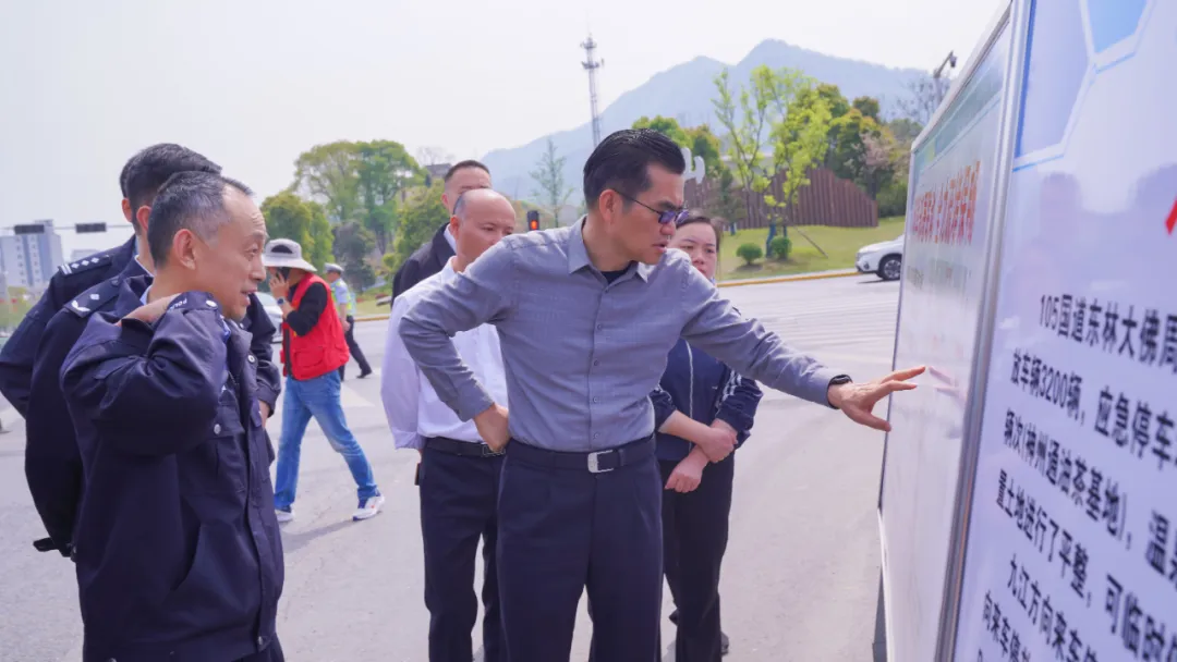 在G105国道东林寺路段和通远交通路口,熊小青详细了解景区周边停车资源、道路隐患治理、交通流量变化等工作情况。在庐山市东林大佛路段,熊小青认真听取交管部门关于景区周边道路交通秩序管理、警力部署、交通组织优化等工作情况汇报。