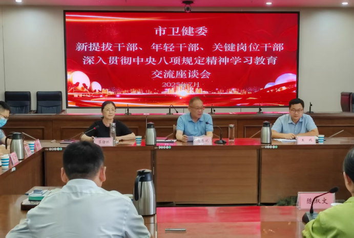 7月9日,市卫健委组织召开新提拔干部、年轻干部、关键岗位干部深入贯彻中央八项规定精神学习教育交流座谈会。党委书记范志斌主持会议并讲话。