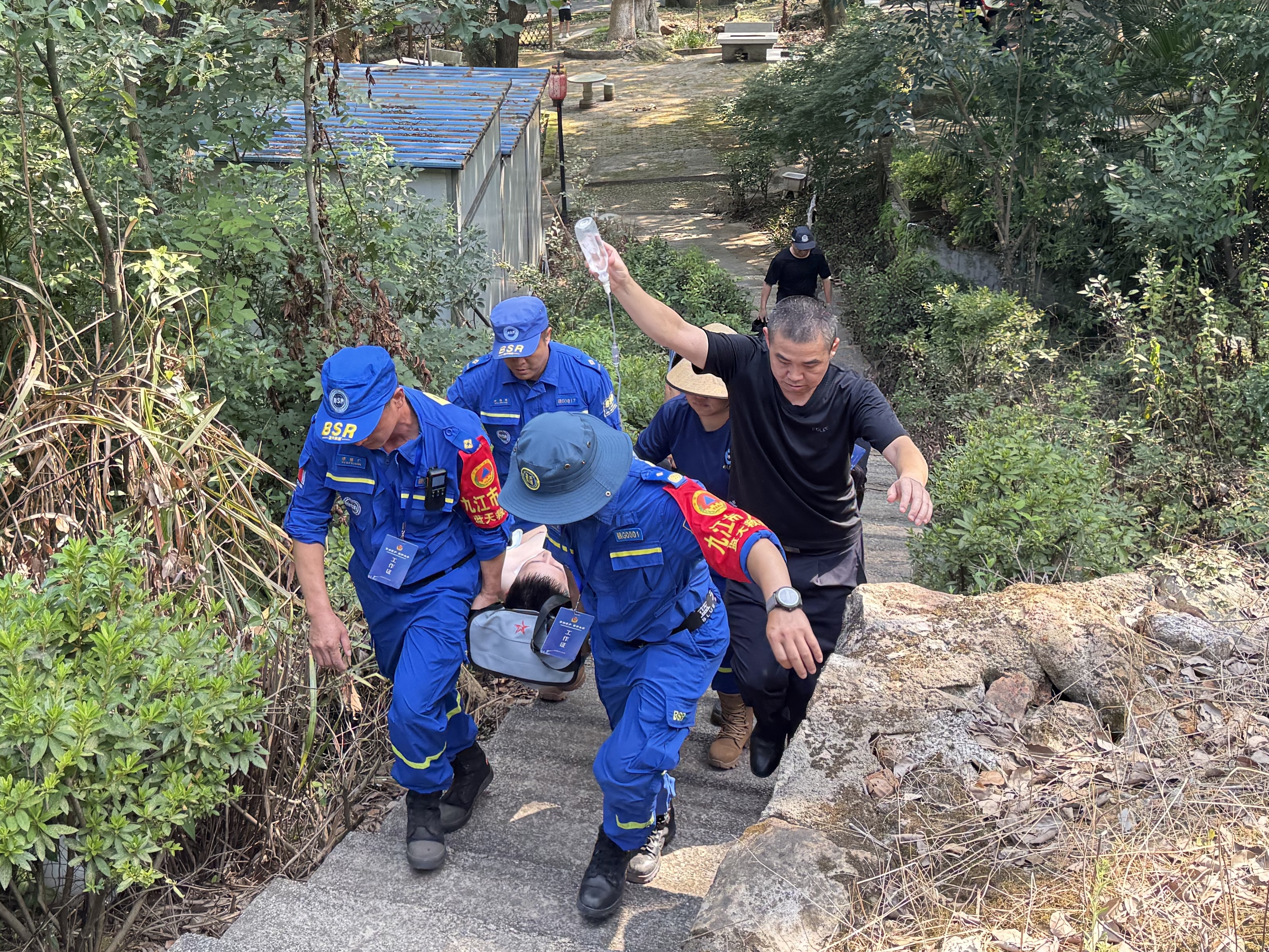 九江国防动员蓝天救援队受领此次保障任务后,秉持“人民至上、生命至上”的理念,将安全保障工作作为重中之重。队员们提前对赛事路线进行细致勘察,充分了解各路段地形特点,结合实际情况,制定有效的救援预案。比赛当日,20名队员分为五组,分别在各个复杂地形路段严阵以待。山地救援赛的赛道地形复杂,包括崎岖山路、丛林地带以及陡坡等,这对队员们的应变能力和专业技能是极大的考验。但全体队员凭借丰富的救援经验和过硬的专业素质,始终坚守岗位,保持高度的警惕。在比赛过程中,蓝天救援队队员密切关注运动员的身体状况,一旦发现有运动员出现身体不适或意外受伤,立即迅速响应,第一时间提供专业的救助。队员们携带了AED、担架等急救设备和药品,涵盖了常见运动损伤的处理药物以及应对突发疾病的急救用品,为运动员的安全提供了全方位的保障。尽管比赛当日天气炎热,给救援保障工作增加了难度,但全体队员克服困难,始终保持专注,做到了保障无死角、救援服务零延误,成功守护了每一位参赛运动员的健康与安全。