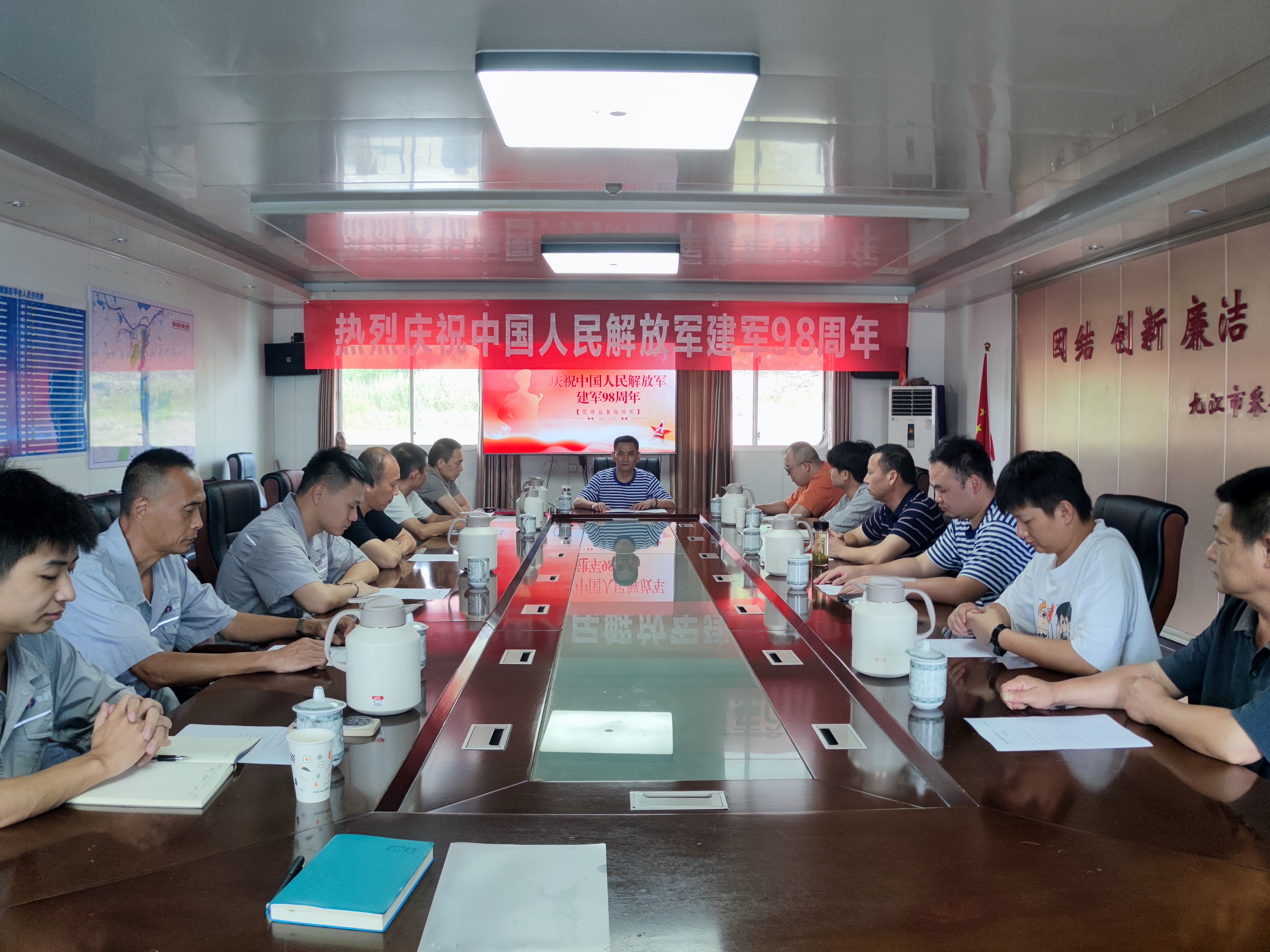 为庆祝建军98周年,响应市委“赓续抗洪精神再谱双拥荣光”号召,8月1日,市砂管局在采砂工作一线组织全体退役军人开展主题活动。市砂管局二级调研员、现场监督指挥部指挥长出席并强调:要将抗洪精神融入血脉,在守护江河安澜中续写军民团结新篇章。
