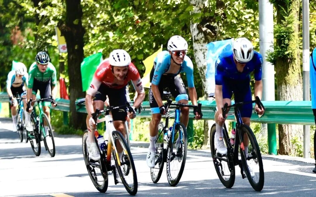 本届赛事首站从庐山市的营地公园出发,骑行至庐山景区北门牌坊。高温的来袭,让车手们才骑行10公里就已纷纷戴上了“痛苦面具”,炎热的天气着实给他们带来了不小的压力。比赛刚开始,中国安踏mentech洲际自行车队的奥斯卡在前半段一马当先、表现抢眼,然而当赛事进入爬坡路段,他渐渐力不从心,最终掉回到大集团之中。此时,爬坡赛段中的荷兰瓦尔肯堡公园酒店的选手率先吹响进攻的号角,意大利格拉尼亚诺体育会选手和德国助力车队的选手也紧随其后、奋起直追。但随着爬坡的持续推进,局势逐渐明朗,德国助力车队的33号选手奥利弗·马特海斯(Oliver MATTHEIS)凭借出色发挥实现单独领骑,并最终一举拿下本赛段冠军。