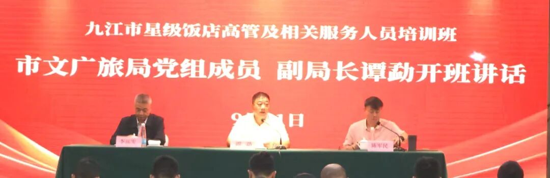 为促进九江市旅游星级饭店高质量发展,提升服务水平,提高市场竞争力。9月20日,由九江市文化广电旅游局主办的“2025年九江市星级饭店高管及酒店相关服务人员培训班”在九江宾馆开班。九江市文广旅局党组成员、副局长谭勐出席开班仪式并讲话,市文广旅局市场监管科科长陈军民主持开班仪式。