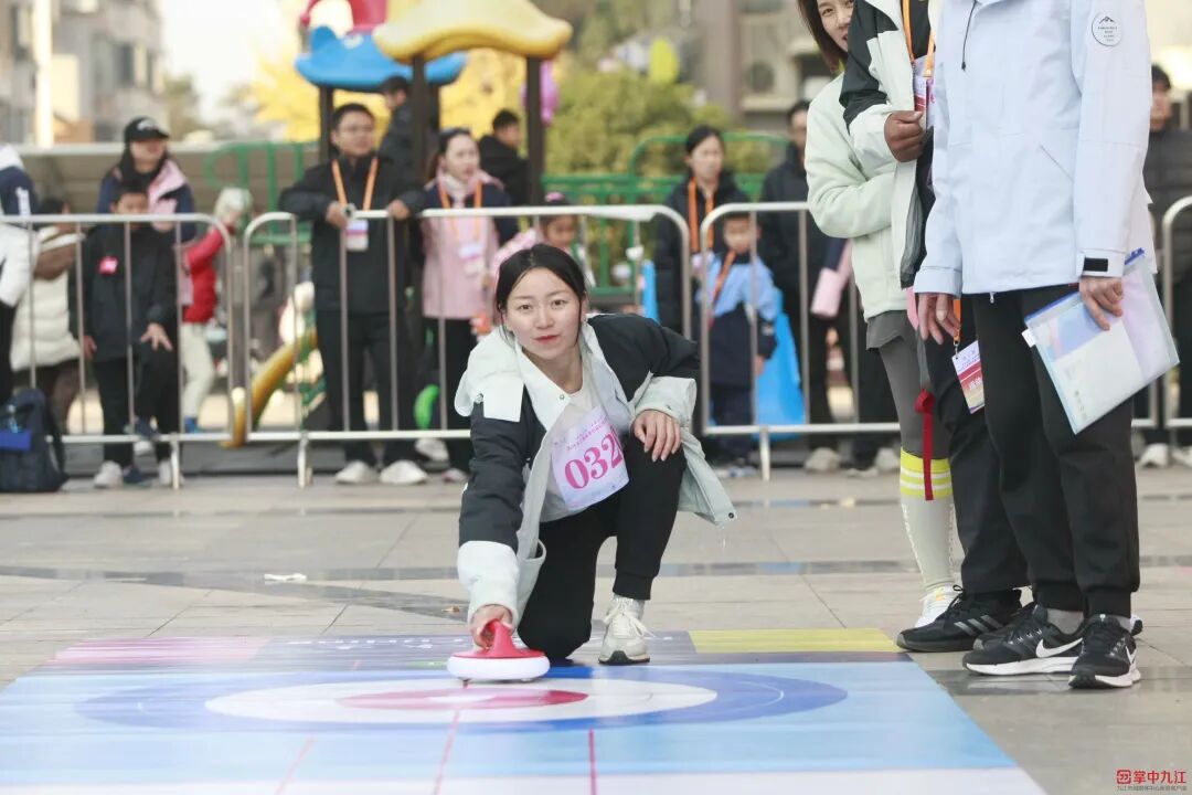 亲子互动区里,温馨与欢乐交织。旱地冰壶赛区,赣州选手张涛一家围坐在一起讨论战术,8岁半的儿子紧攥推杆,在父母的指导下瞄准目标、缓缓发力,看着冰壶朝着目标区域滑动,一家人脸上满是期待。“为了这次比赛,我们周末都在家练习,输赢不重要,和孩子一起闯关的快乐最难得。”张涛说。