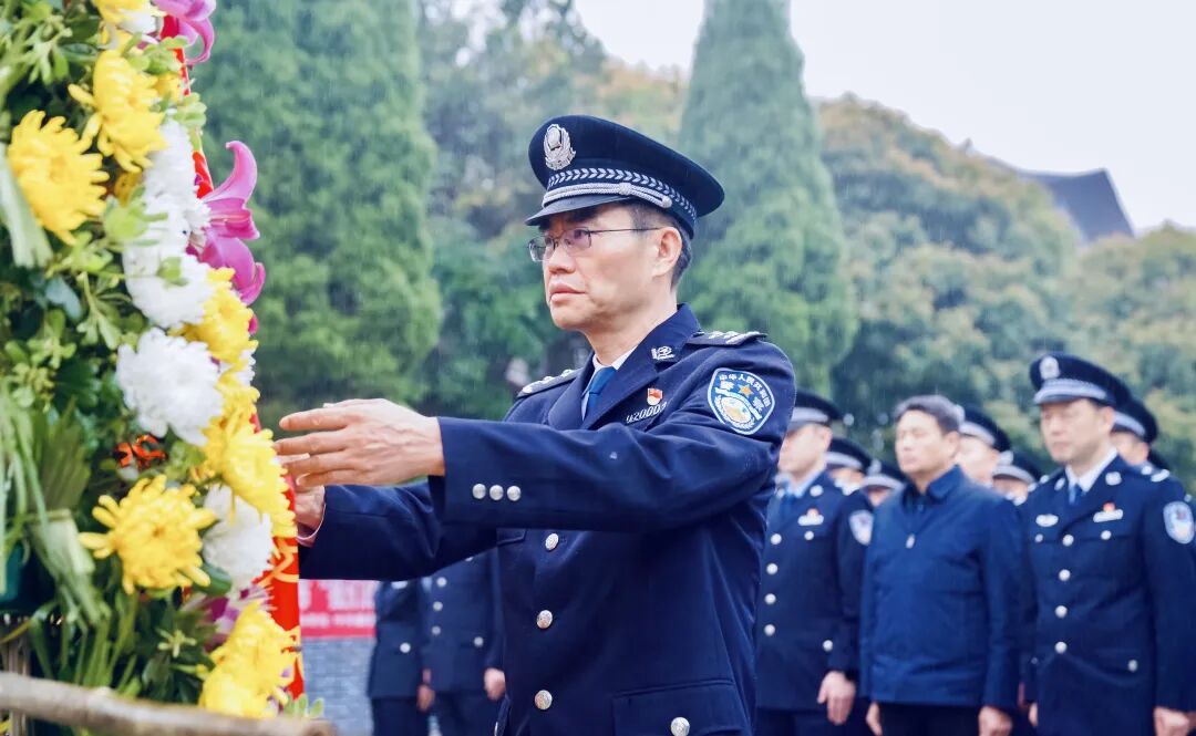 上午9时整,仪式在庄严的国歌声中拉开序幕。全体民警整齐列队、神情肃穆,高唱中华人民共和国国歌。国歌唱毕,全体脱帽肃立,向革命先烈默哀。默哀毕,4名礼兵稳稳抬起花篮,缓步走向英烈墙,庄重地向革命先烈敬献花篮。熊小青迈步向前,仔细整理花篮缎带,全体民警手持菊花,缓步绕行瞻仰英烈墙,依次向革命英烈献花,深切缅怀革命烈士们的丰功伟绩,寄托哀思与敬意。