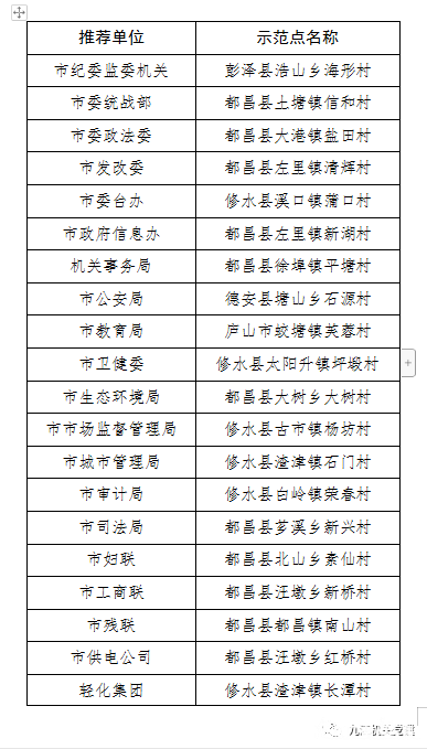 公示!九江市直机关第二批“驻村第一书记抓党建、促脱贫示范点”入围名单