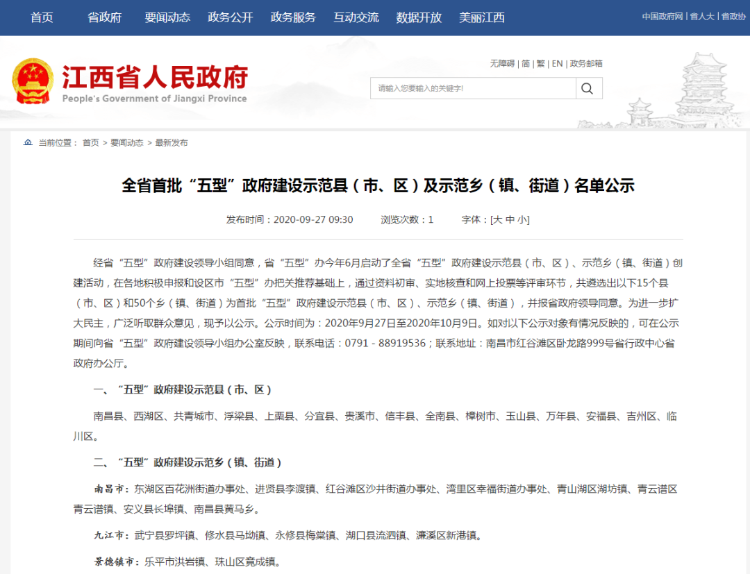 全省首批“五型”政府建设示范名单公示!我市5个地方入选