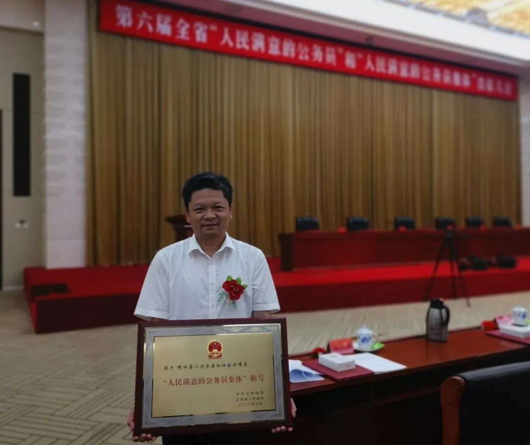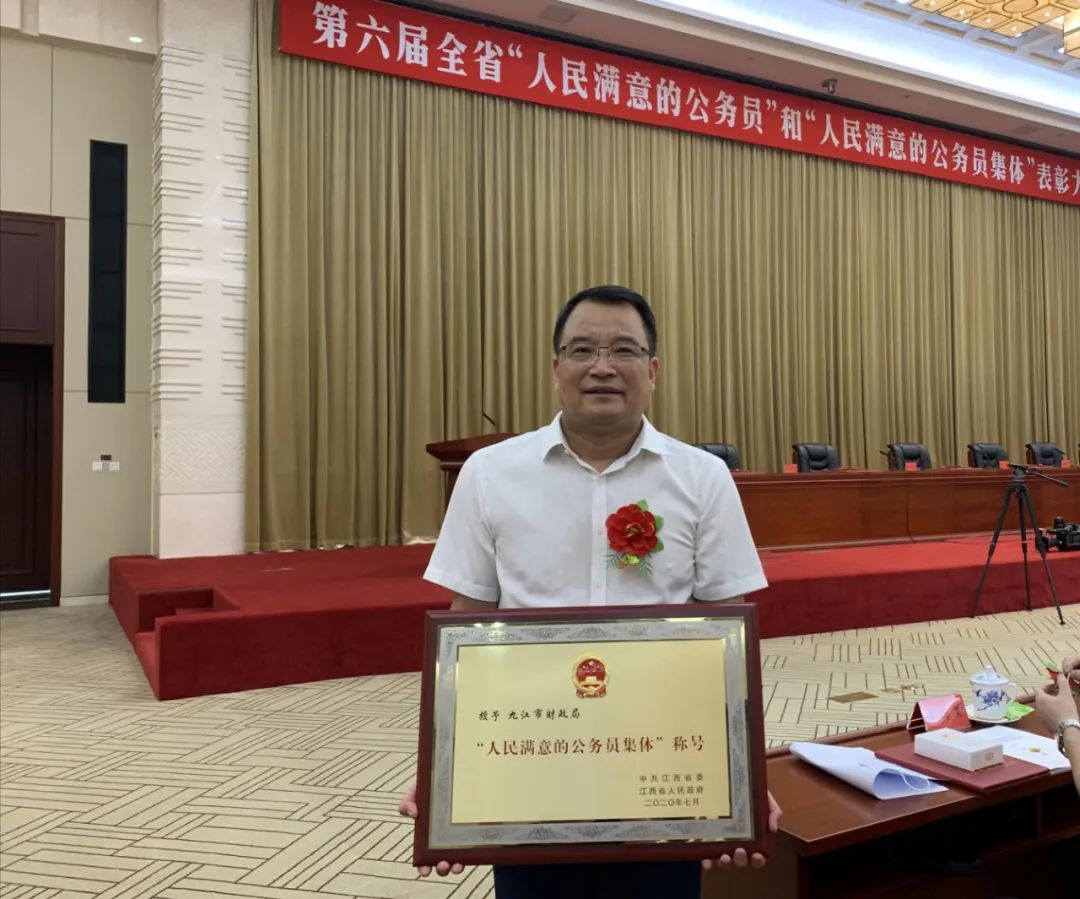 7月21日,省委、省政府在南昌召开第六届全省“人民满意的公务员”和“人民满意的公务员集体”表彰大会。市委常委、组织部长李洪涛带队参加表彰大会。刘金华、鄢俊彬、程刚三名同志荣获全省“人民满意的公务员”称号,九江市财政局、修水县人力资源和社会保障局两个单位荣获全省“人民满意的公务员集体”称号,黄国华、盛伟、欧阳君三名同志荣记一等功!市委常委、组织部长李洪涛与获奖个人、集体代表在会场合影刘金华,男,中共党员,1981年6月出生,九江市纪委监委机关纪委专职副书记、市纪委驻彭泽县浩山乡海形村第一书记。该同志2016年以来一直担任彭泽县浩山乡海形村偏远山区驻村扶贫第一书记,他把“第一书记”责任放在心上、扛在肩上、落实到行动中,任劳任怨,一心为民。他带领村民成立专业合作社,兴建食用菌产业扶贫基地,带领全村贫困户参与种植,2017年以来,每年发放贫困户分红10余万元及务工工资30余万元,2019年村集体经济达到了近10万元。他坚持把扶贫同扶智、扶志相结合,驻村帮扶工作深得民心,赢得了当地党员群众的称赞。鄢俊彬,男,中共党员,1978年4月出生,瑞昌市政府党组成员、办公室主任。在担任瑞昌市市场监督管理局党组书记、局长五年期间,他率领市监团队荣获70余项国家、省、市荣誉,全省80多个县级同行前来“取经”。他打造了市场监管机构改革“瑞昌样板”,被全省80多个县局复制推广,2018年5月,新组建的国家市场监管总局首次基层调研,肯定“瑞昌样板”为全国基层市场监管改革坚定了信心、提供了模板。2018年4月,国务院办公厅通报表扬瑞昌商事制度改革成效,并获10项政策激励。2019年12月,人社部、市监总局联合表彰他为全国市监系统先进工作者。