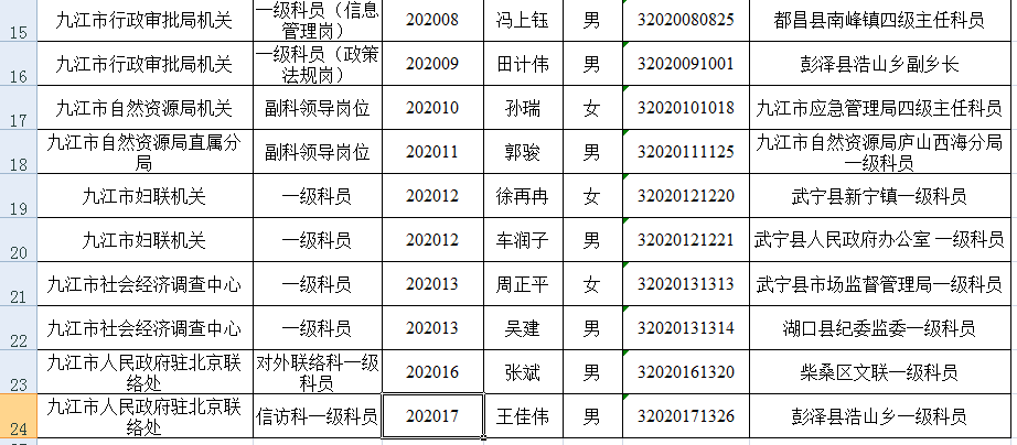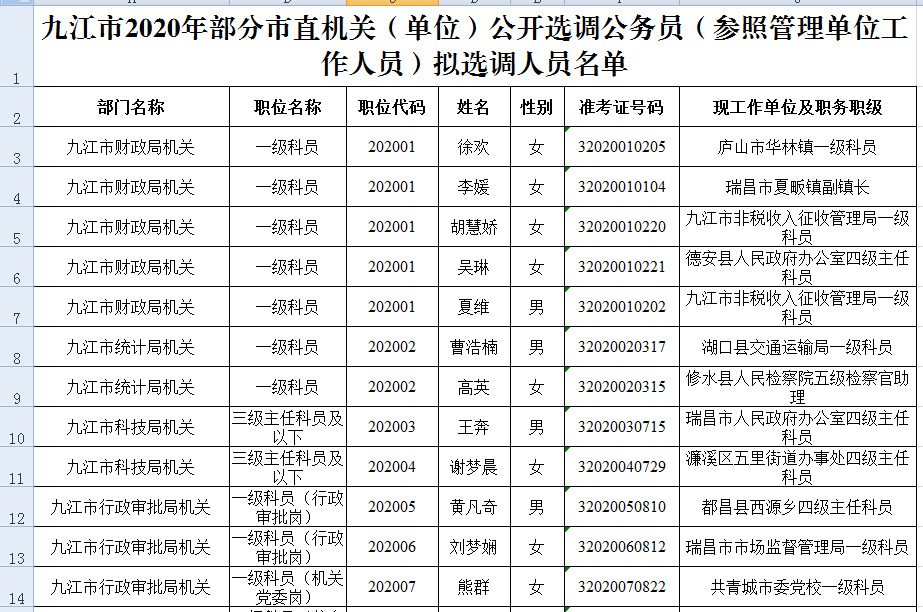 九江市2020年部分市直机关(单位)公开选调公务员(参照管理单位工作人员)笔试、面试、考察及体检工作已经结束。现将拟选调人员名单予以公示(附名单),公示时间为2021年3月5日—11日,请社会各界进行监督。