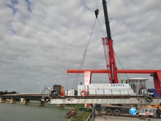 经过长途运输、吊装、调试、检测、下水,9月13日,九江八里湖蓝藻治理001号船完成了交付入列验收手续,标志着九江河湖管理再添一枚新利器。