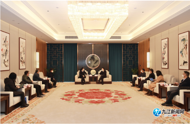 江西国科军工集团股份有限公司党委书记、董事长毛勇,市政协副主席、市工商联主席陈世勇,市委秘书长匡建军参加会见。(九江日报全媒记者 包四华/文 张驰/摄)