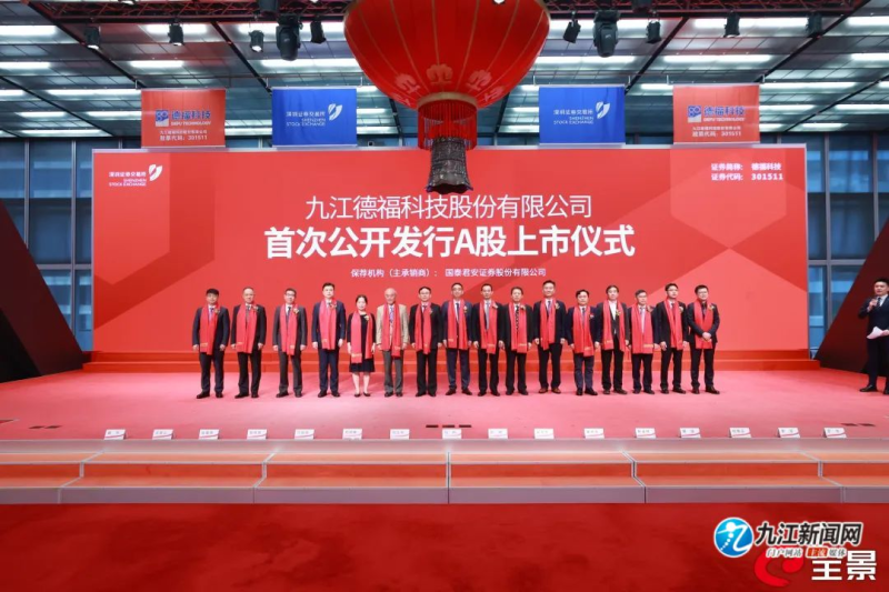8月17日,九江德福科技股份有限公司在深圳证券交易所创业板敲钟上市,我市又添一家本土培育的上市企业。市委书记刘文华出席上市仪式并致辞,深圳证券交易所党委委员、副总经理彭明,省金融监管局副局长万良顺,省科技厅副厅长陈金桥,省发改委一级巡视员李志刚,省工信厅二级巡视员熊健出席。