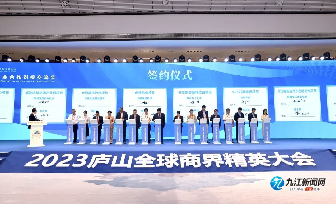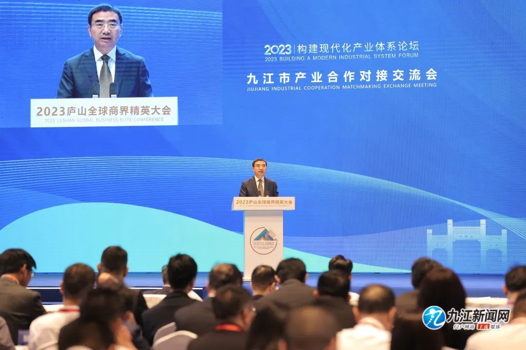 9月6日,2023庐山全球商界精英大会专题活动“构建现代化产业体系论坛”暨九江市产业合作对接交流会举行,爱尔眼科集团副总裁吴士君,复星集团副总裁、豫园股份联席董事长石琨,心连心化学工业集团股份有限公司董事长刘兴旭,远东控股集团董事局执行主席兼首席执行官蒋承志等数十位商界精英齐聚一堂、共商发展,市委副书记、市长蒋文定出席活动并致辞。