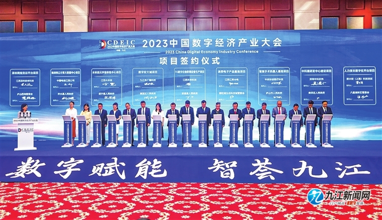 数字赋能,智荟九江。9月23日,由中国科协指导,中国电子商会、江西省科协、江西省发改委、九江市人民政府共同主办的2023中国数字经济产业大会在我市举行。省委常委、常务副省长任珠峰,中国电子商会会长王宁,市委副书记、市长蒋文定出席并致辞,省政府副秘书长熊科平出席,省科协党组书记曾萍主持。