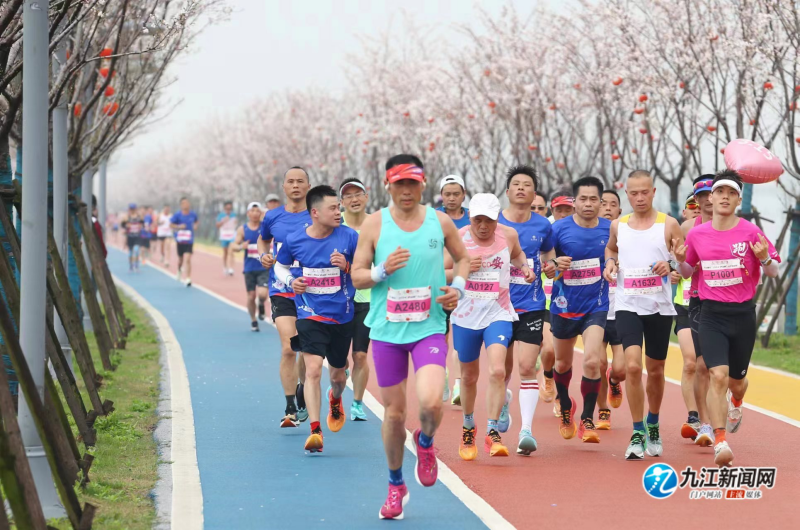 此次赛事在去年的办赛基础上对路线进行了优化调整,赛道整体围绕八里湖、赛城湖两大城市内湖展开,前半程串联起了市体育馆、博物馆、文化艺术中心等九江标志性建筑,让参赛者在行进中体会九江建筑之美;后半程进入赛城湖绿道,15公里内6000余株樱花竞相绽放,在春日里带给参赛者们饱富生机的唯美画面。