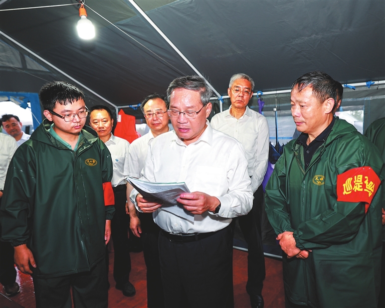 在白鹿镇,李强主持召开防汛形势分析会议。听取江西省、庐山市、白鹿镇和应急管理部、自然资源部、水利部、中国气象局负责同志汇报后,李强指出,今年极端异常天气多发,各地各部门要切实警觉起来,抓实抓细工作举措,全力确保安全度汛。要加强灾害预报预警和应急响应,全面落实直达基层一线的临灾预警“叫应”机制。要严防强降雨引发各类次生灾害,全面排查城市防洪排涝薄弱环节,加快补齐农田防汛排涝短板。要切实发挥水利工程作用,加强上下游、左右岸、干支流、省际间统筹协调,提前做好应对主雨带继续北移准备。要全力做好抢险救援和救灾救助,提高基础设施灾害设防水平,对极端情况要有足够的防范应对措施。一旦发生灾害,要统筹调派各类救援力量,第一时间开展救援,努力把人员伤亡和灾害损失降到最低。要统筹抓好抗旱减灾,强化抗旱水源调配,确保群众饮水安全和秋粮丰收。