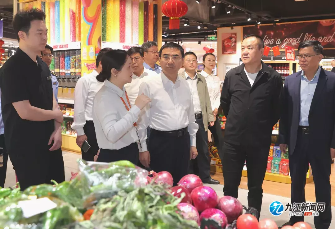蒋文定一行来到八里湖新区保利天汇项目现场,详细了解了项目施工进展、安全管理措施等情况,强调要严格施工现场管理,加强值班值守,确保建筑施工安全。九江经开区联盛九龙广场超市内货品丰富,价格平稳。蒋文定边走边看,详细询问货源渠道、商品供应、食品安全、消防安全等情况。他指出,要强化食品安全监管,加大巡查检查力度,确保消费者买得放心、吃得安心;要加强人员密集场所监管,为群众营造安全放心的消费环境。