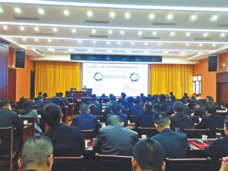11月18日上午,学习贯彻党的二十届四中全会精神市委宣讲团报告会在庐山市举行。市委宣讲团成员、市委副秘书长、市直机关工委书记熊玻作宣讲报告。