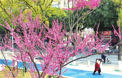 2月23日,长江国家文化公园九江城区段,绿叶出新、春花烂漫,早春二月的浔阳江畔可谓处处春意盎然。在暖阳的照耀下,人们或赏花、或漫步,有的还兴致勃勃地放起风筝来,乐享春日里的美好时光。(本报记者 刘家 摄)