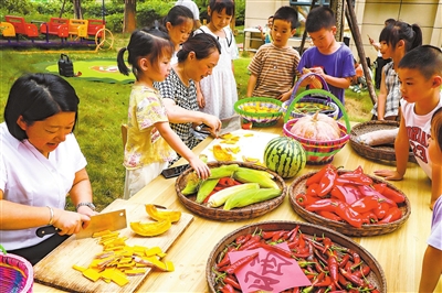 8月6日,在立秋节气来临之际,湖口县组织暑期托管班的孩子们开展晒秋民俗活动,通过摸秋、啃秋、拾秋、画秋,让孩子们在游戏中触摸传统、亲近自然,让丰收的喜悦和民俗的魅力在孩子们幼小的心灵里扎根发芽。(沈海斌 赵晨婉 摄)