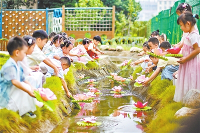 9月30日,都昌县中心幼儿园开展“萌娃迎中秋”主题活动,小朋友们在老师的指导下体验制作月饼、彩绘灯笼和放河灯,感受传统民俗文化,喜迎中秋佳节。(胡珍珍 尹 志 九江日报 记者 程 鹏 摄)