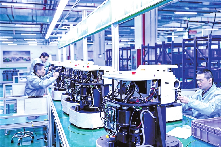 近日,位于鄱阳湖生态科技城的优地科技智能制造基地内一派繁忙景象,工人们正加班加点组装一批即将发往海外的清扫机器人。该基地主要可为用户提供清扫、配送等全系列室内机器人和室外机器人的整机及其配套模组的智能制造、装配、维护等全套解决方案。今年以来,优地科技产品销量增势强劲,市场表现亮眼,已销售机器人超过3000台。(陈书平 九江日报记者 刘家 摄)