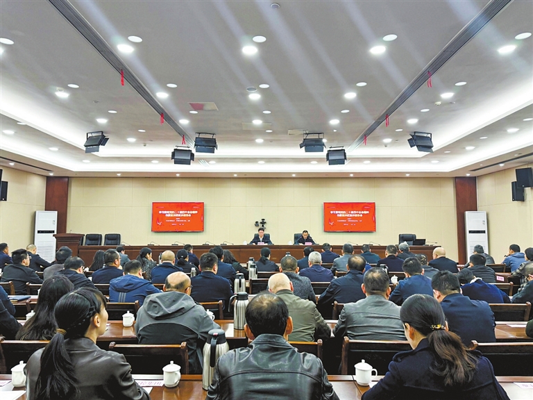 11月14日,学习贯彻党的二十届四中全会精神市委宣讲团报告会在市民服务中心举行。市委宣讲团成员、市委副秘书长、市委社会工作部部长、市委两新工委书记张小军为全市新兴领域暨市两新工委作宣讲报告。市级各行业(综合)党委有关负责人、部分新兴领域代表、市委社会工作部全体干部职工聆听报告。