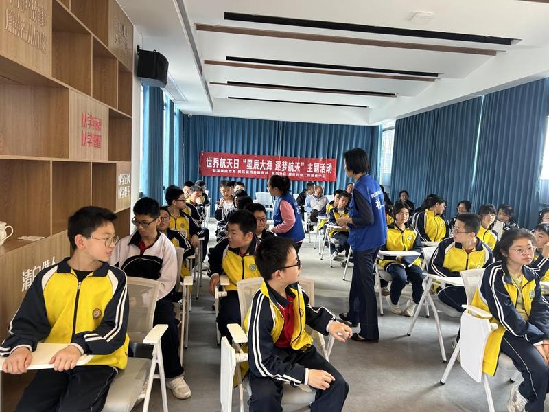 活动中,志愿者通过宇航员绘本、图片向未成年人分享了航天知识,讲解“世界航天日”的由来和发展历史,通过视频方式展示外太空的样子,激发了青少年对浩瀚的宇宙探索的欲望。“神舟飞船是怎么飞上天的呢?”“宇航员叔叔在太空为什么会飘起来?”少年们小小的脑袋里装满了无数个问号,志愿者耐心地为他们一一解答。“通过此次活动,不仅让我增长了航天知识,还激发了我对航天科技的浓厚兴趣,接下来我将努力学习科学知识,争取今后为航天事业贡献自己的力量。” 博吾中学学生严帅说道。