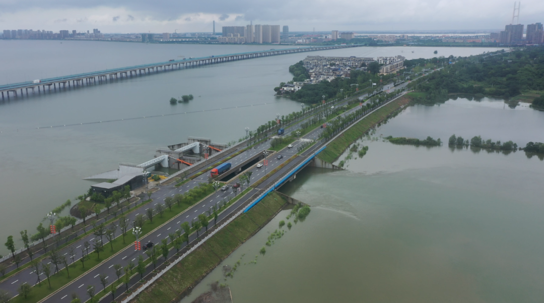 “自6月25日19时起,我们就启动了8台机组,对赛城湖、八里湖进行强排。截至7月2号12时,枢纽8台机组累计运行了约1300小时,累计抽排洪水约1亿立方米。”九江三峡水环境项目公司总经理居献忠介绍,“由于昨夜九江突降暴雨,八里湖水位上涨太快,我们及时响应了调度指令,开启了八赛连通闸进行分洪,将八里湖的水排到赛城湖,缓解城区的防汛压力。”