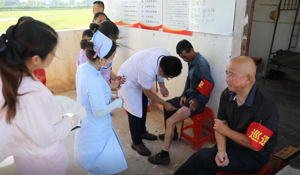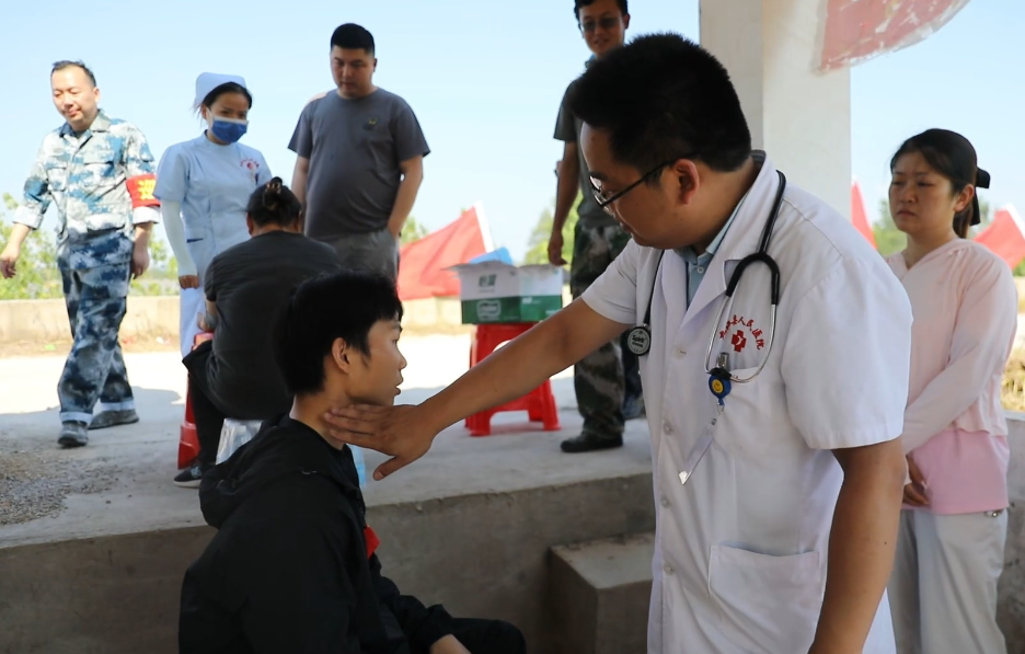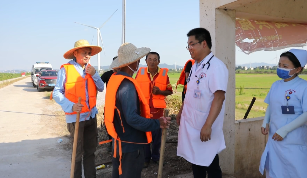 省人民医院驻江洲镇官场村第一书记罗昭淦:“现在我们每天都抽调精干力量,24小时在堤坝上巡诊。全力保障参加防汛值守的干部群众身心健康,让大家能够以饱满的状态,投入到防汛抗旱的工作当中。”