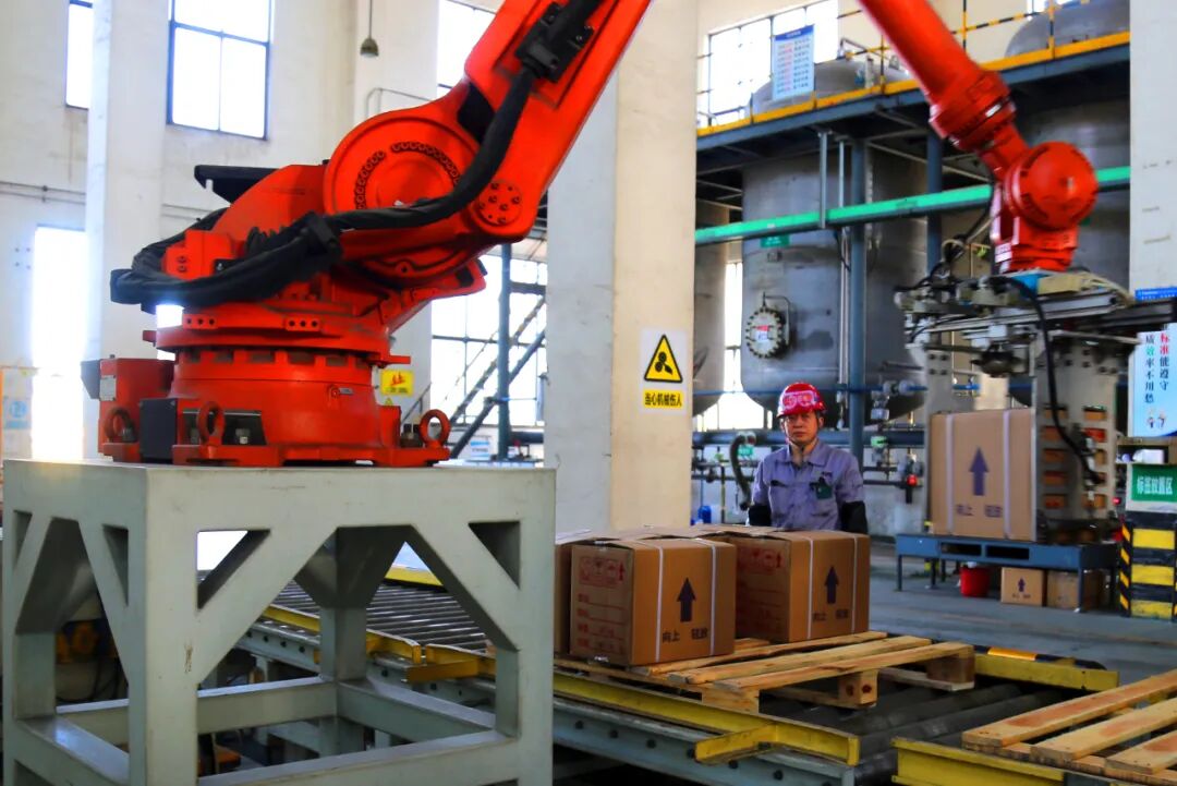 机器人手臂翻转舞动,抓住流水线上的产品箱,码放到指定位置,这样带有科幻感的场景,就发生在位于江西湖口高新技术产业园区的江西晨光新材料股份有限公司打包车间,“智造”的生产力令人印象深刻。前不久,该公司“5G+工业互联网全连接工厂”获评全省“5G+工业互联网”应用示范项目。