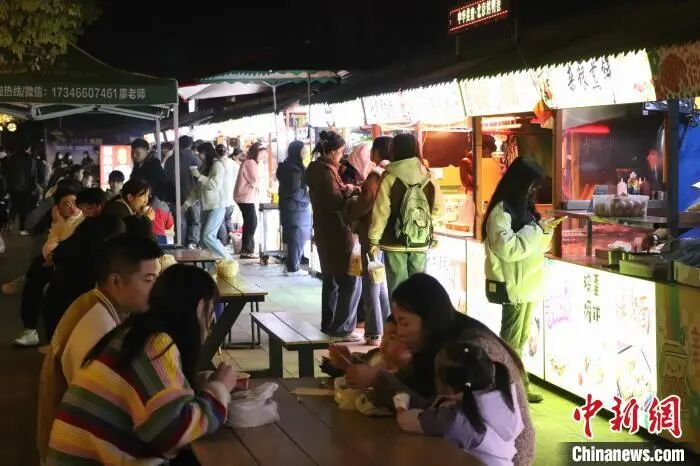 图为九派青年夜市,不少民众晚上前来“打卡”消费。中新社记者 熊锦阳 摄