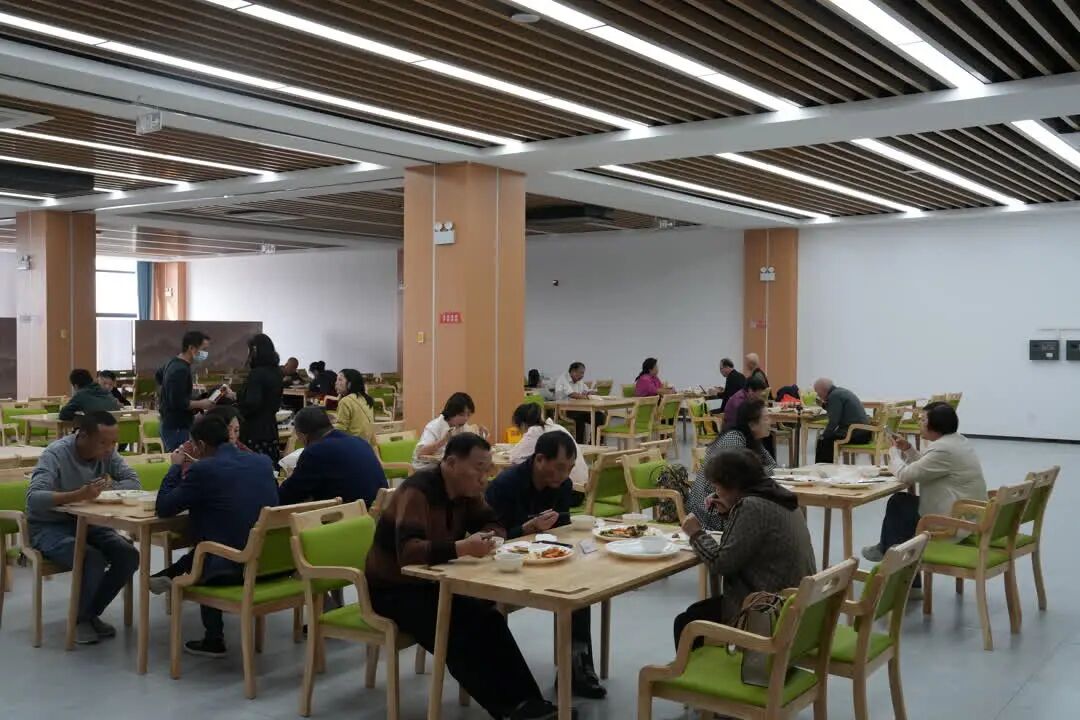 中午时分,记者在幸福食堂看到,红烧肉、酱鸭、时蔬等菜品荤素搭配、丰富多样。“这里可以同时容纳400至600人就餐,采用公办民营、社区监管的模式,面向社会开放,秉持‘营养均衡、口味适中’理念,老年人还能享受优惠。”九龙新城社区党总支书记、居委会主任徐佳峰介绍道。