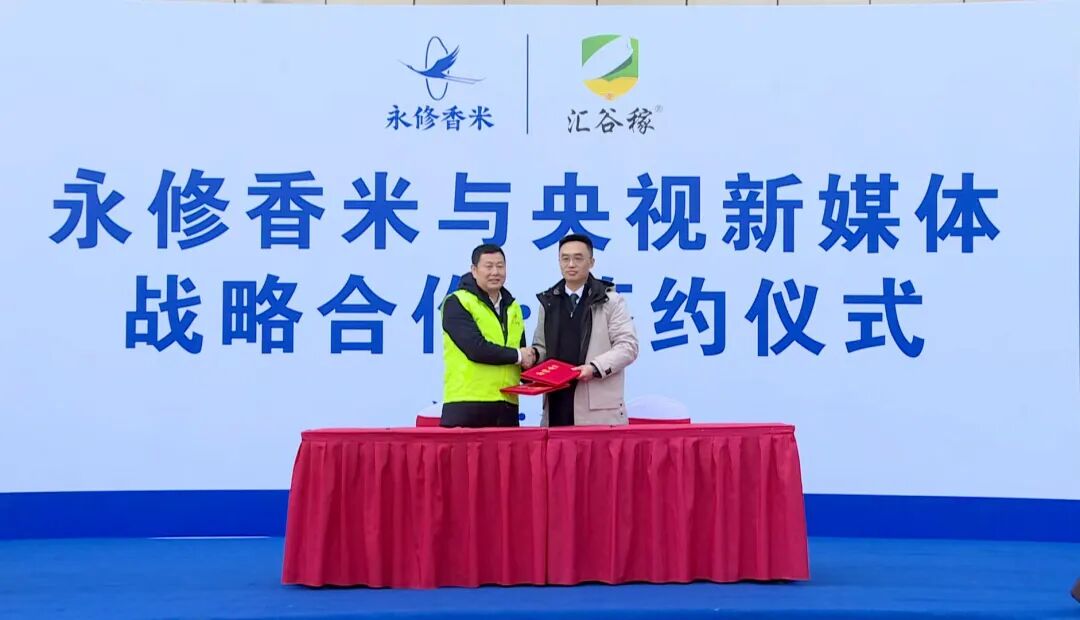 12月17日,永修香米与央视新媒体部战略合作签约仪式在九江谷稼米业有限公司举行。