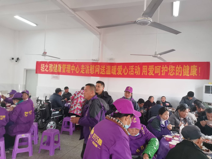 在芙蓉墩中心敬老院,轻之雅健康管理中心的爱心志愿者们对院内老人进行了走访慰问,为老人们送上节日的温暖与关怀。活动开始时,志愿者们为老年人带来了歌唱表演,为老人们送上节日的祝福。中午,志愿者们和老人们一起吃了一顿热闹的腊八饭,让老人们倍感喜悦和温暖。